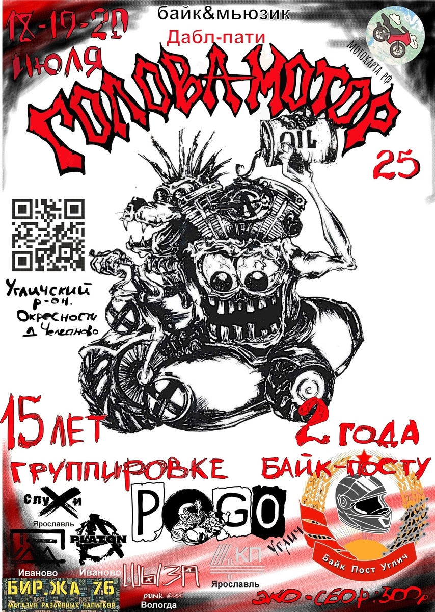 🔁 Дальняк.рф™: Дорогие друзья! Прочь от городской суеты и повседневной рутины — мы с огромным удовольствием приглашаем вас на Bike&Music Double Party Голова-Мотор! Вкусите ветер свободы, насладитесь живописной природой, оторвитесь под первоклассную музыку и проведите время в кругу единомышленников! Это отличный шанс забыть обо всех заботах и окунуться в мир, где музыка и рев двигателя становятся единым целым! 💥 Почему Double Party? В этом году мы празднуем сразу два значительных события: юбилей группы PoGo] — 15 лет и двухлетие [https://vk.com/bikepostuglich|Байк-поста Углич! Это двойная порция радости и воспоминаний! 🗓 Когда? С 18 по 20 июля 2025 года — три дня, наполненных музыкой, весельем и приключениями! 📌 Где? Угличский район, живописный берег Волги, рядом с деревней Челганово. Координаты: 57.599915, 38.370299. Идеальное место для тех, кто жаждет природной красоты и незабываемого драйва! ♻ Сколько? Эко-сбор составит всего 300 рублей, и они стоят каждого незабываемого мом