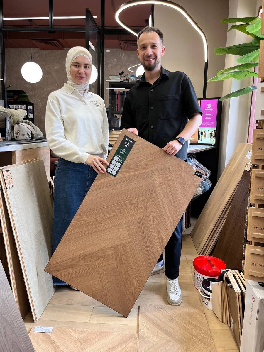Сегодня с Изабеллой Шарифулиной в салоне Назарбаева подбирали ламинат под клиента 😍