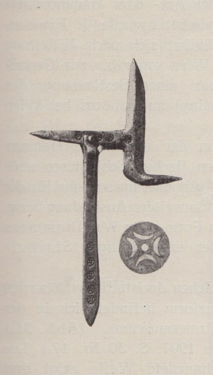 Метательные топоры. Немецкие. (Z.H.W.K. Heft 6/7, 1925): 1. 1-я пол. 15 в. 27,0 х 16,5 см. Вес 870 гр. Коллекция Вильчека; 2. 2-я пол. 15 в. 25,0 х 19,5 см. Вес 700 гр. Коллекция доктора Розе; 3. 1-я пол. 15 в. 42,5 х 21,0 см. Вес 745 гр. Баварский музей Армии; 4. 2-я пол. 15 в. 38,0 х 28,5 см. Вес 770 гр. Баварский музей Армии; 5. 2-я пол. 15 в. 40,0 х 25,0 см. Вес 1000 гр. Коллекция доктора Розе; 6. кон. 14 в. 45,0 х 25,0 см. Вес 700 гр. Коллекция доктора Розе; 7. кон. 15 в. 41,5 х 20,5 см. Вес 900 гр. Баварский музей Армии; 8. 1-я пол. 15 в. 43,5 х 24,5 см. Вес 1000 гр. Коллекция доктора Розе; 9. 1-я пол. 15 в. 43,0 х 21,0 см. Вес 1250 гр. Коллекция Вильчека.