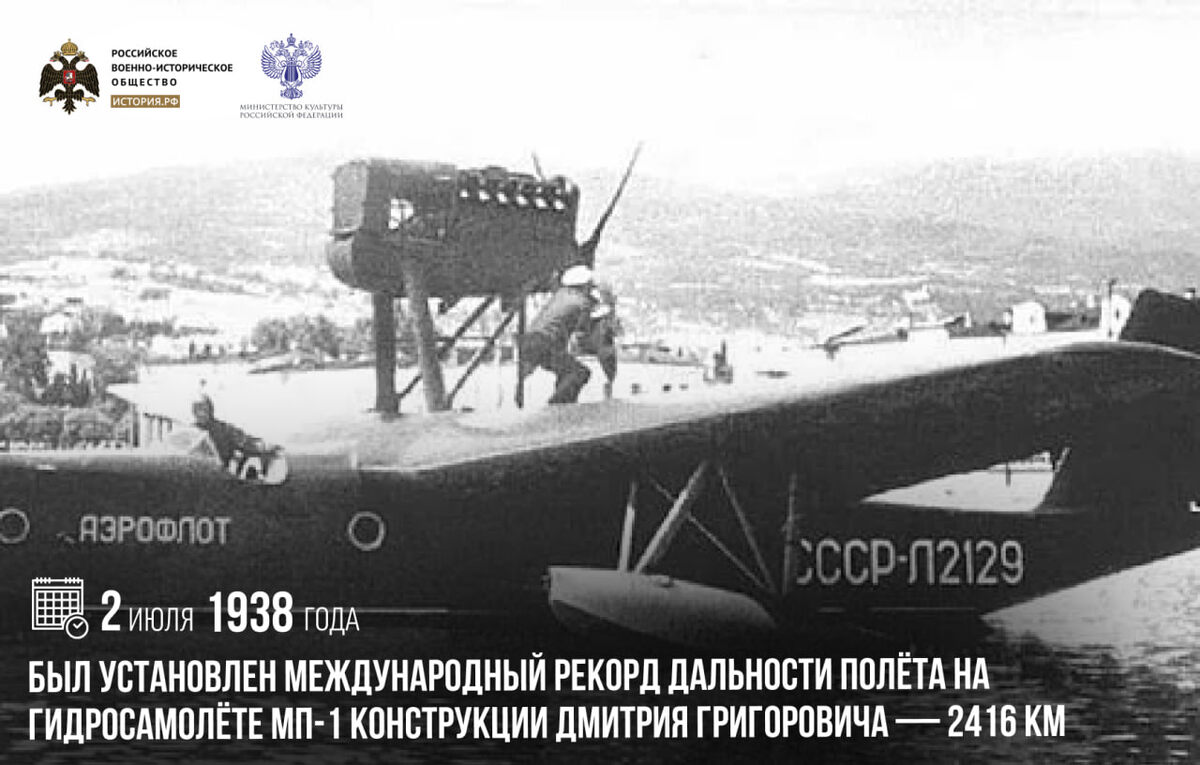 2 июля 1938 года был установлен международный рекорд дальности полета на гидросамолете МП-1