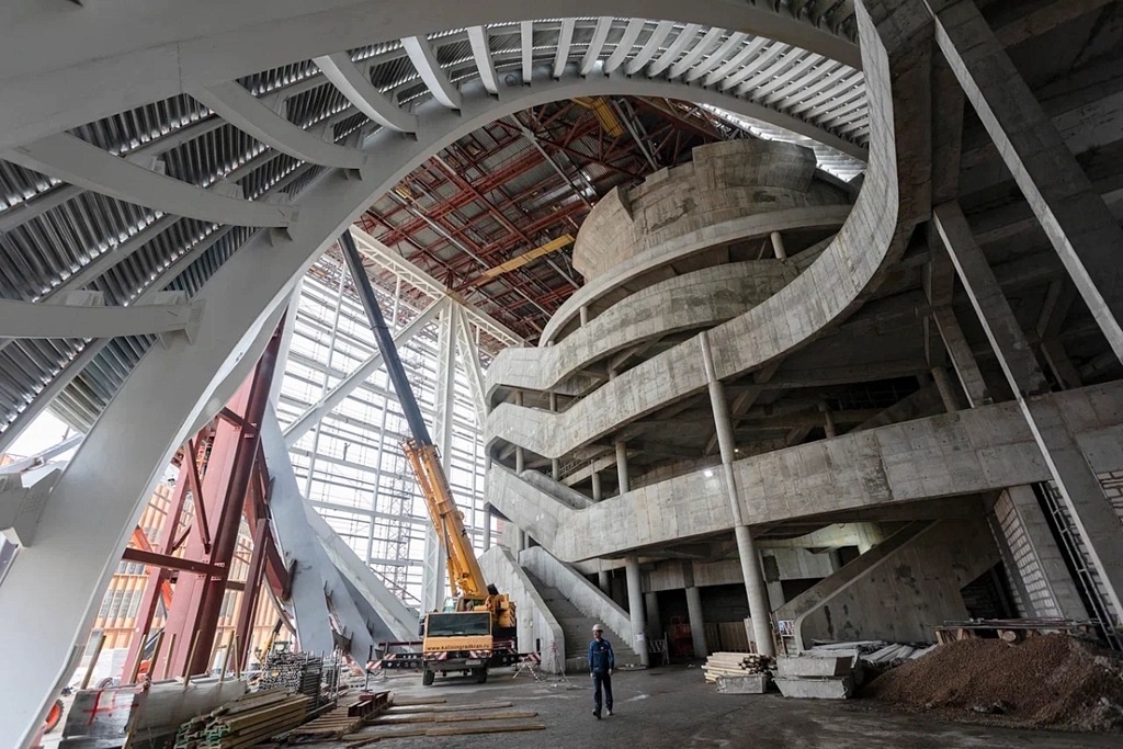 Генеральный директор ООО «СТГ-Запад» Дмитрий Ржанников отметил сложность выполняемых работ. По его словам, консоль здания является уникальной конструкцией, требующей особого подхода. На фасаде планируется разместить амфитеатр, что добавляет дополнительных технических требований к проекту.