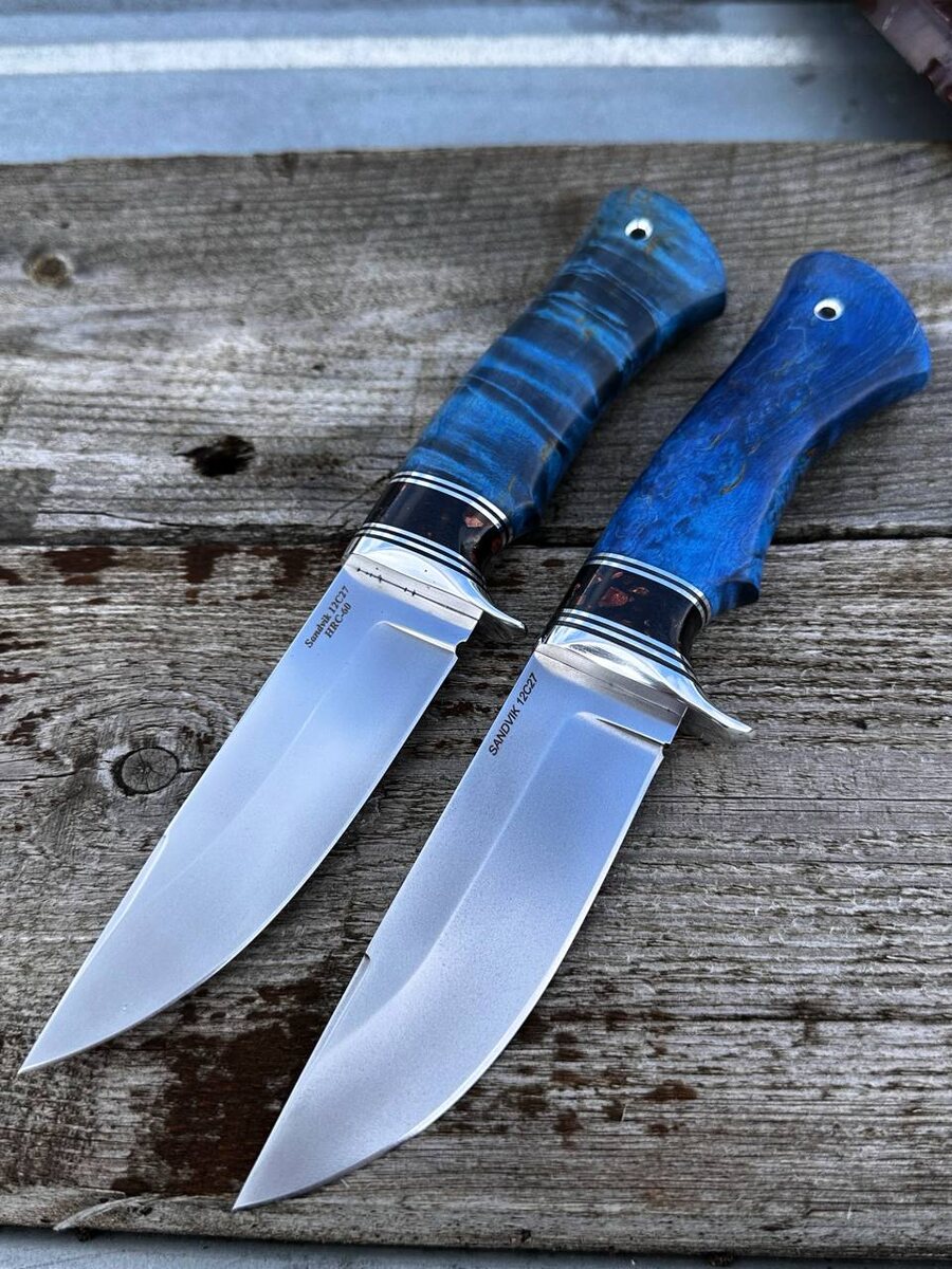 Охотничий шкуросъемный разделочный нож Гепард из шведской нержавеющей стали Sandvik 12C27 с рукоятью из стабилизированной карельской берёзы синей и акрила, в наличии на момент публикации. Клинок не требует ухода, хорошо держит заточку (твёрдость HRC 60), имеет антибликовую обработку и естественно заточен до бритвенного состояния. Ножны в комплекте. Цена по акции: 8.000 руб. Обычная цена 10.820 руб. Можем изготовить формованные ножны из кожи растительного дубления (+ 8000 руб.) Для заказа писать на @Nazarklinokbot или по тел +79101343831, WhatsApp