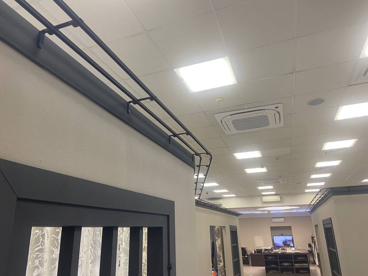 2 карниза КС 15 м, четыре загиба угла, в черной комплектации на стеновых кронштейнах.