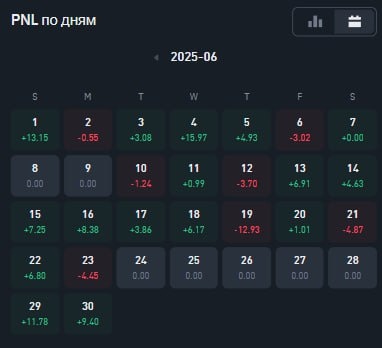 Результаты торговли на криптовалюте за июнь по стратегии парного трейдинга из обучения 👉 vkfinance.ru