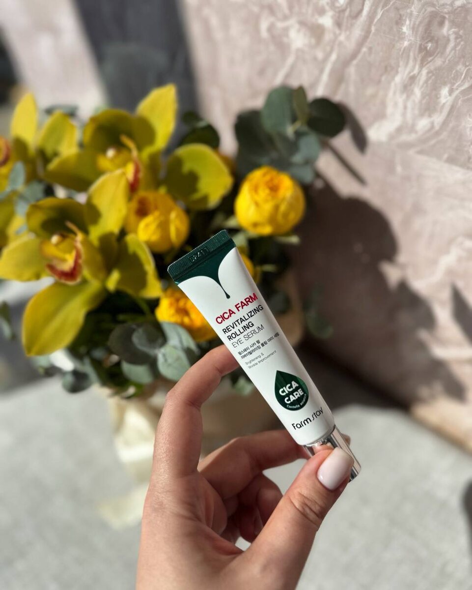 Не только от сыворотки я кайфую каждое утро, но еще и от крема под глаза в идеальном формате! У него гениальный железный наконечник: прокатываю им область вокруг глаз и наслаждаюсь, даже когда не высыпаюсь🫓 Стоит всего 643 рубля, увлажняет и идеально ложится под консилер, на утро для кожи под глазами без особых проблем просто супер 🐣 Поделитесь своими любимчиками?