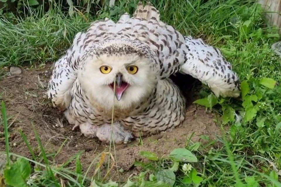 Маме-сове тоже не очень нравится, когда к малышам приближаются посторонние. Она старается отпугнуть незваных гостей.