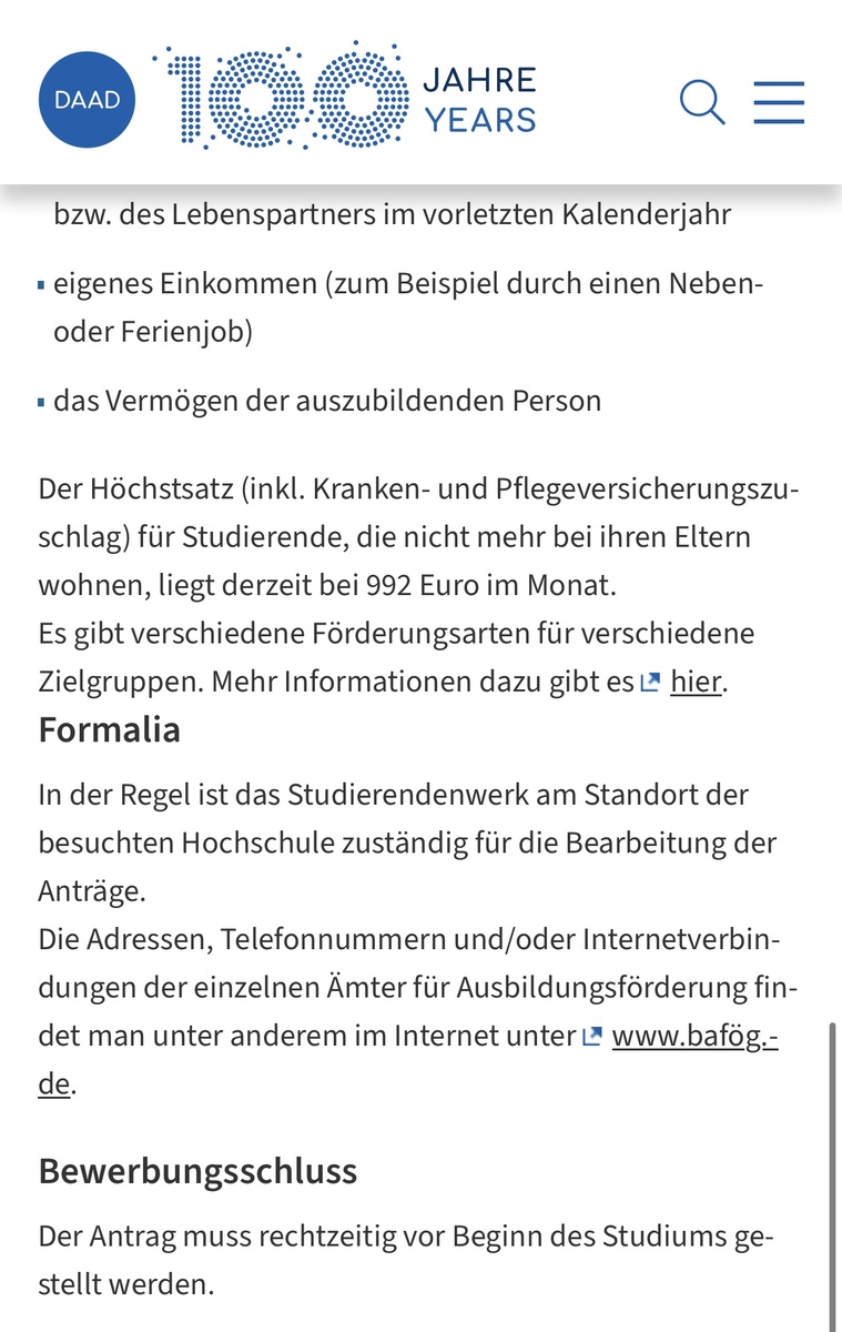 Вы также можете узнать о возможностях получения стипендии непосредственно в вашем университете в Германии. Многие стипендии выдаются только тем, кто уже официально является студентом немецкого вуза. Например, стипендия DAAD подаётся заранее — вам не обязательно уже находиться в Германии, чтобы подать заявку на неё. Если у вас пока нет стипендии и без неё учёба кажется сложной, вы можете подать заявку на эту поддержку заблаговременно.