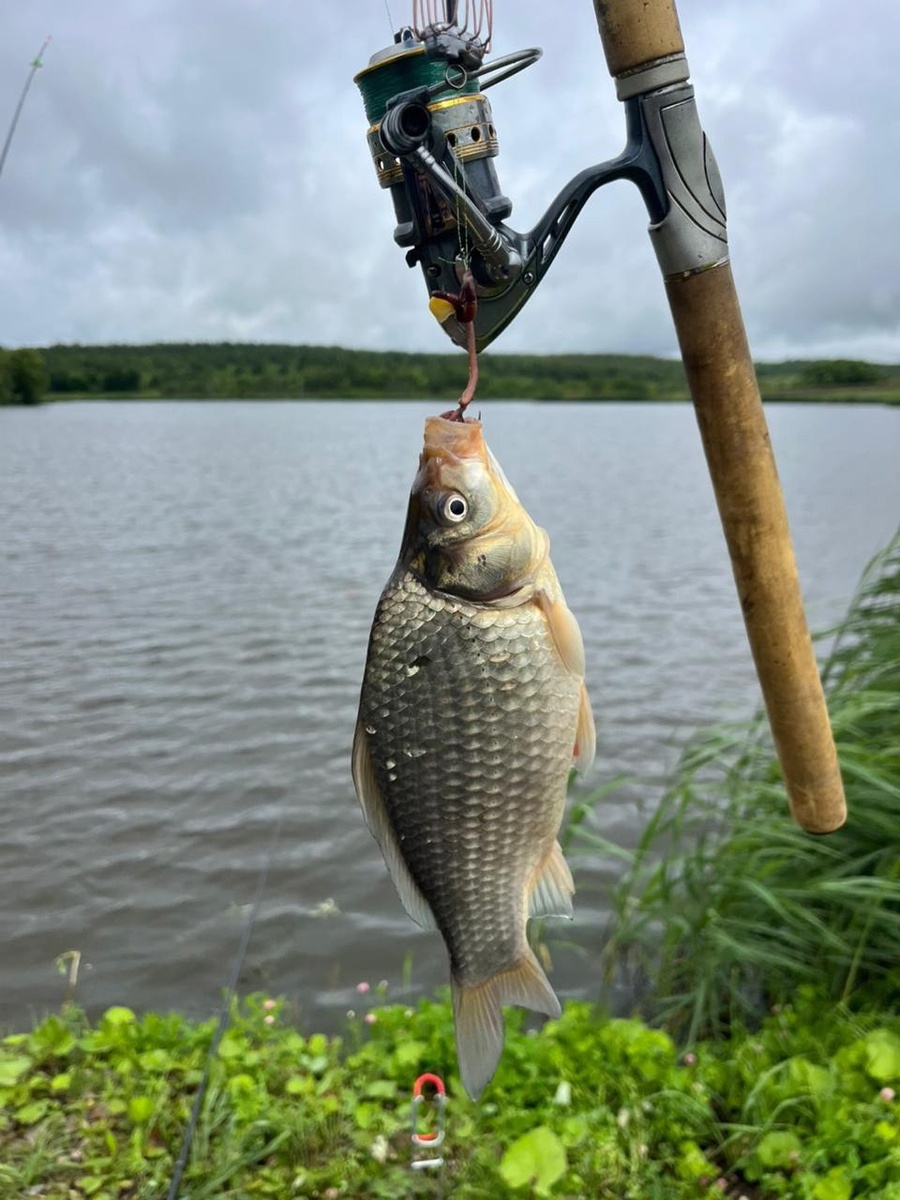 Славно порыбачили сегодня, правда дождь всю дорогу, и по пути шёл, поэтому ехать было трудно, глина, помог хозяин пруда, Евгений, огромное спасибо, если бы не вы, не видать нам рыбки). Долго не могли подобрать ключик к карасю, но когда подобрали, устали дергать, весь как на подбор, жирный и приличный. По карпику было несколько штук, но это только от неопытности. Были до обеда, но удовольствия с лихвой. Очень красивое и уходеное место, видно, что хозяин относится с душой, чисто, выкошено, в беседке ни соринки. Да, это пруд Смородинка, мы в восторге, теперь только сюда. Источник