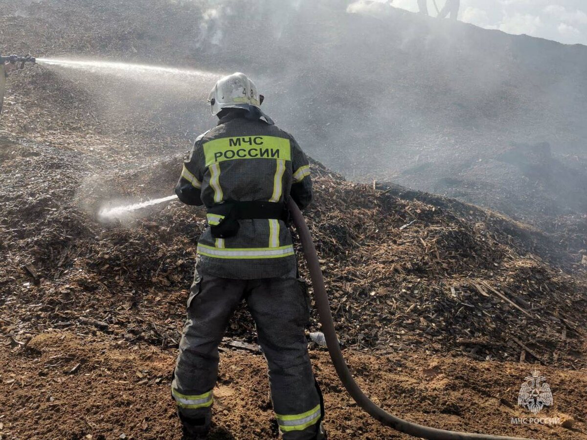 📍Место пожара - г. Лесосибирск, Красноярский край. Вспыхнул склад щепы, предназначенной для работы котельной.