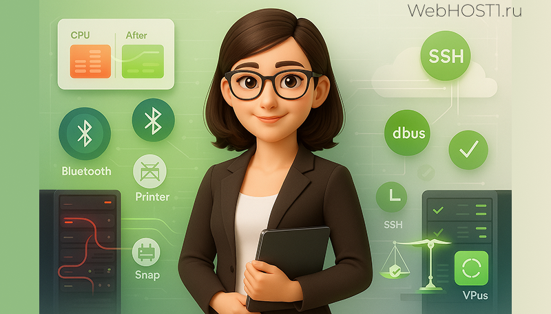 Когда вы арендуете виртуальный сервер или настраиваете собственный хостинг, производительность и стабильность становятся приоритетами. Казалось бы, выбрали дистрибутив, установили нужный стек, и всё готово. Но даже «чистая» система запускает десятки фоновых служб, большинство из которых не имеют отношения к вашей задаче — будь то запуск 1С, хостинг сайта или CI/CD-сборка. А значит, они зря тратят ресурсы, замедляют загрузку и потенциально открывают уязвимости. Разбираемся, как навести порядок. Популярные дистрибутивы на базе systemd (Ubuntu, Debian, CentOS, Fedora) по умолчанию включают целый набор служб. Это может быть avahi-daemon для обнаружения устройств, bluetooth.service, службы печати (cups), медиадемоны, агенты виртуализации — даже если вы арендуете сервер в дата-центре без GUI и не планируете передавать файлы по Samba. На слабом или ограниченном по ресурсам сервере это чувствуется буквально с первых минут: память съедена, CPU загружен неизвестно чем, сеть живёт своей жизнью. А