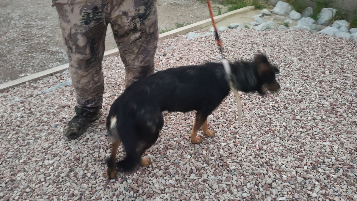 На турбазу в Крыму пришла замученая и исхудавшая собака. Это была Ариша. Работники базы не могли оставить её, но покормили и напоили несчастное животное. Ариша ушла... Но вернулась с двумя щеночками и просящими глазами. Как-то она смогла выкормить их в лесу. Но щенки подросли, молоко закончилось и выжить бы они не смогли. Но мать всегда что-то придумает, чтобы детки не голодали и она нашла людей. Конечно их приняли и стали кормить. Но это только временно. Дать им постоянный приют на базе не могли. Нашли нас. Как только смогли мы приехали и забрали Аришу с детками к нам. Ариша очень ласковая, добрая и совершенно ручная. Очевидно, что она когда-то жила с людьми. Потом что-то случилось и она была вынуждена родить в лесу. Что она ела сама - непонятно. Далеко от шенков не уйдёшь и вряд ли она могла добывать в лесу какую-то еду. По её состоянию видно, что всё свои силы она отдавала детям. Теперь наша задача откормить Аришу и восстановить её здоровье, затем стерилизовать и н