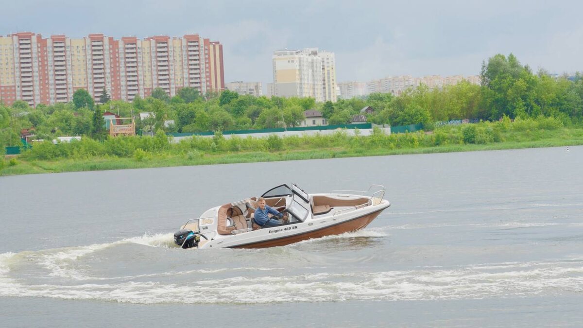 Перед нами стояла задача подобрать клиенту качественную и стильную лодку. Она должна быть небольшая, легко перевозимая, в тоже время в ней с комфортом хотелось бы разместить 4-5 человек. На лодке планируются семейные спокойные прогулки в тишине и без постороннего запаха. Задачи быстро ходить не было. Enigma 460 BR с нашим электромотором Ellisabeth 9,9 идеально подошли под запрос. Мы установили на нее один мотор, три батарейки, комплект электрооборудования. Общий вес лодки и оборудования составил 650 кг! Вместе с судоводителем (в лице меня) вес уже был примерно 720 кг! Смог ли я вывести лодку таким весом на глиссер на электромоторе 25 л.с.? Как считаете?