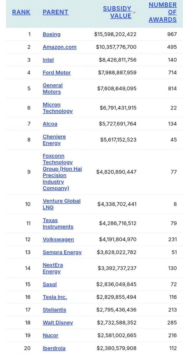 Китай обвиняют в субсидировании своей промышленности. Тем временем, лидер по дотациям - США.