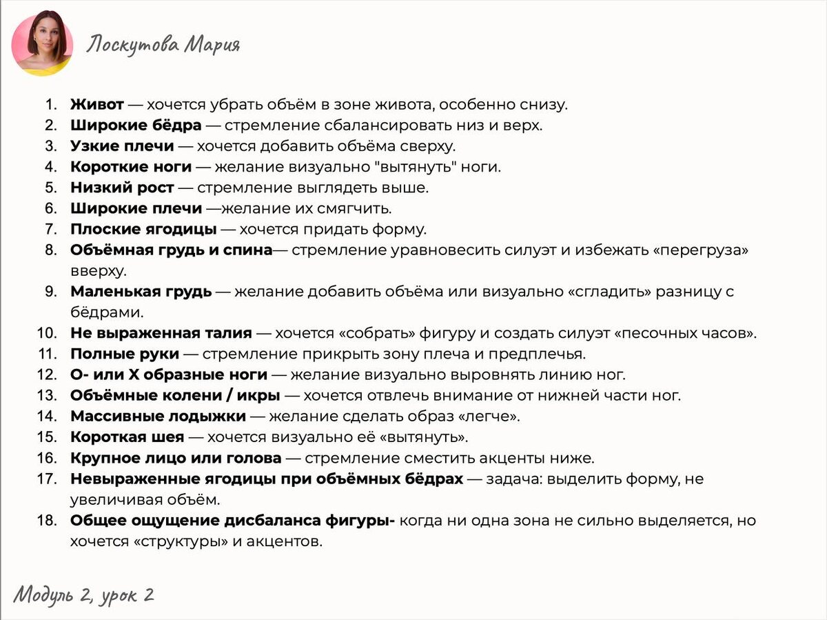 Друзья, пишу новый обучающий практикум по стилю, скоро начнем набор в группу❤️🔥 🤌Судя по нашему опросу- очень актуальна тема коррекции фигуры, с помощью одежды! И конечно, я ее включу! ☝️Добавила вот эти пункты пока- напишите, если еще что-то нужно? Какие особенности тела есть у вас, которые не знаете, как скорректировать? Ниже будет опрос- проголосуйте что у вас? 🙏