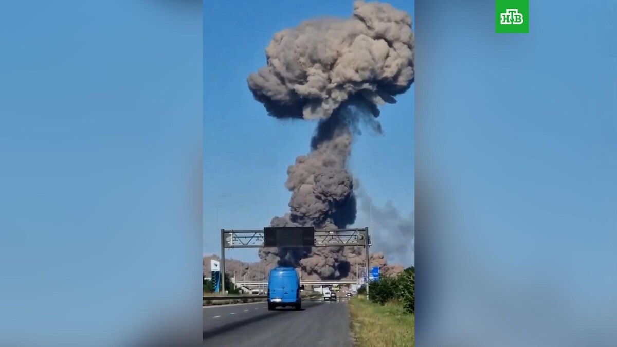 [ Смотреть видео на сайте НТВ ] В украинском Житомире 2 июля прогремел мощный взрыв, передают местные СМИ. По соцсетями расходятся видео, снятые в разных районах. На некоторых их них видно крупное грибовидное облако дыма. На одной из записей, снятой на трассе, видно, что проезжую часть засыпало каким-то мелкими обломками. Очевидец говорит, что «машины горят». На трассе видны легковые машины, а на парковке у обочины — прицепы грузовиков. Все затянуто дымом. Украинские СМИ сообщают, что взрыв прогремел на АЗС. При этом причина детонации не называется. Сообщается также, что трасса Житомир — Киев перекрыта. [ Смотреть видео на сайте НТВ ]