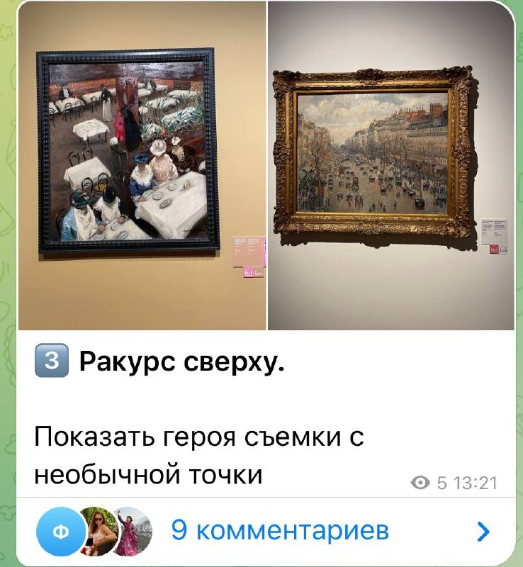 Посетила Музей ИЗО и Эрмитаж. Вдохновившись работами импрессионистов, сегодня в фотопрогулку добавила новое задание. Ракурс сверху. Я вдохновляюсь в музее и потом вдохновляю вас на фотопрогулках. В комментарии загружу, что мы сегодня на фоткали по этому заданию. А следующая фото прогулка будет 9.07 Локация Московский рынок. Запись в комментарии - «я иду» или Имя и Фамилию Время прогулки 13:30-16:00