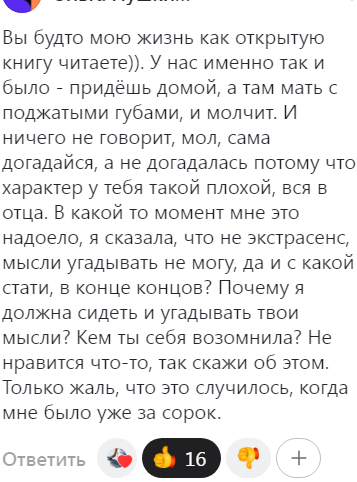 И комментарий читательницы на эту тему: