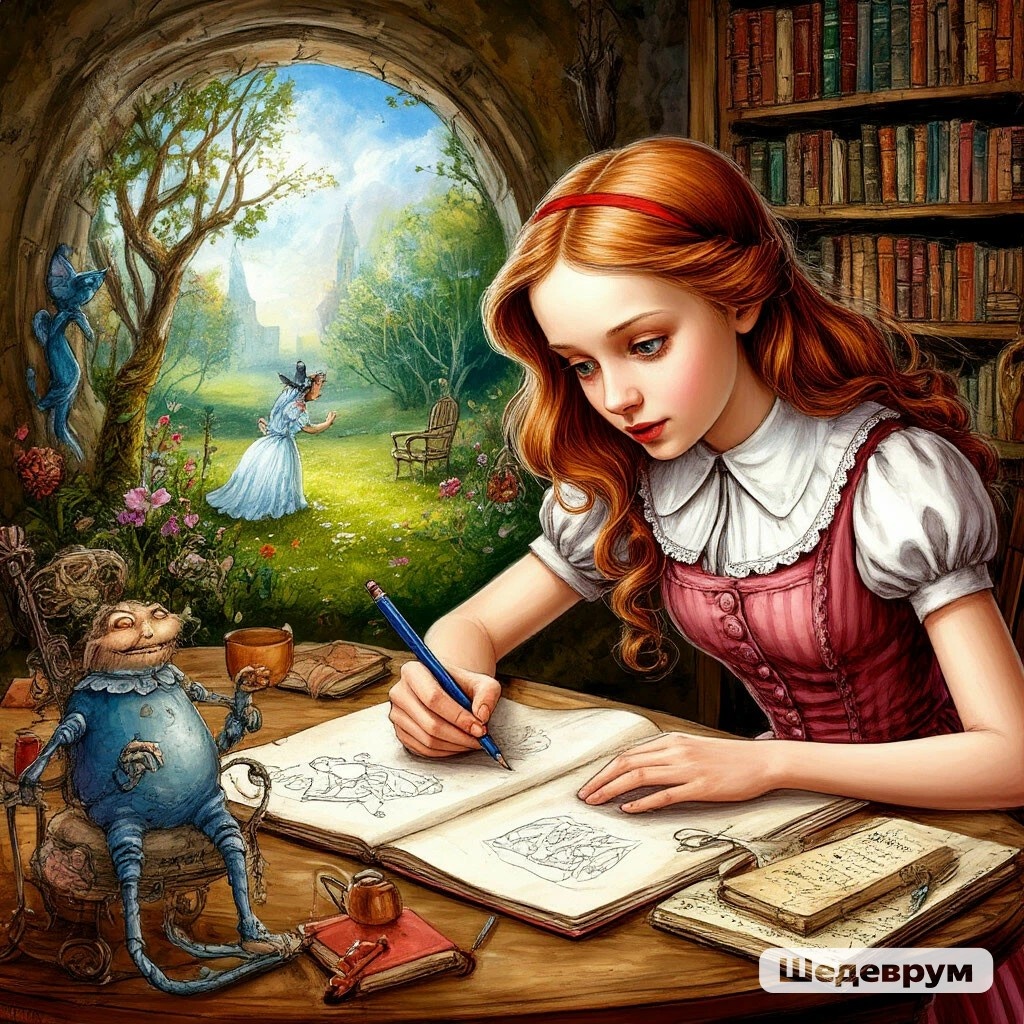 Алиса сидела за своим огромным столом, окруженная горами бумаги, кистями и баночками с красками всех цветов радуги. Сегодня она решила нарисовать сказку. Не просто иллюстрацию к уже написанной, а создать свою собственную, где слова будут рождаться прямо из-под кисти.