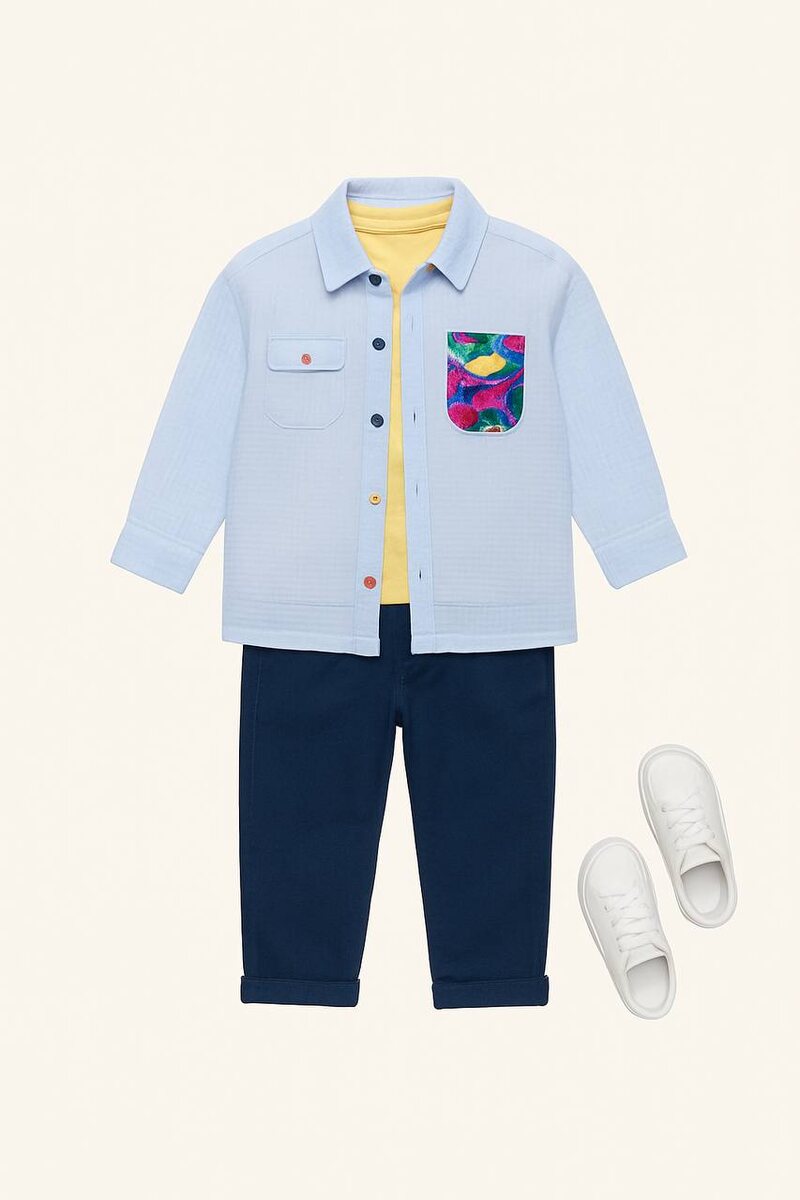 Как вам такой outfit для мальчика? 🔵Рубашка 🔵Футболка 🔵Брюки 🔵Кеды