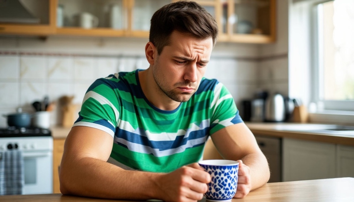 Бело-синяя чашка. Стояла на столешнице, как будто её забыли убрать. Рядом — упаковка кофе. Не наш обычный, а какой-то тёмной обжарки, которую я никогда не покупал.