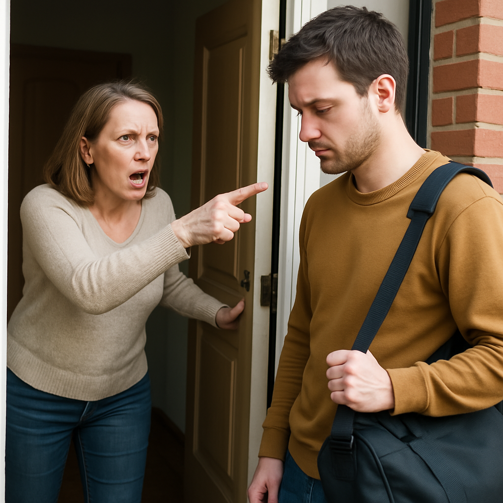 Он вскочил, лицо перекосилось от неверия и гнева: «Ты что, выгоняешь меня? Собственного сына?»