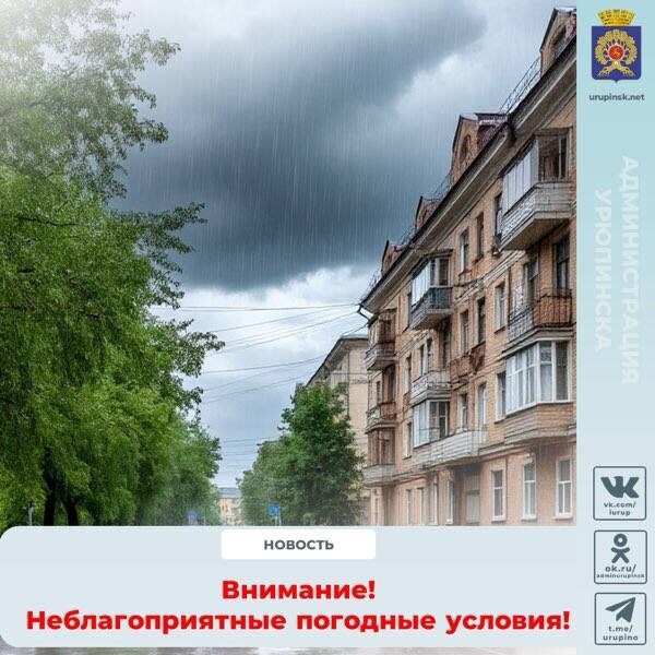 📡По данным Волгоградского центра по гидрометеорологии и мониторингу окружающей среды в период 20.30-21.30 часов 02.07.2025 с сохранением до конца суток 02.07.2025 в отдельных муниципальных районах Волгоградской области ожидается комплекс метеорологических явлений: ливни, сильные дожди в сочетании с грозой, градом и усилением ветра 20‒25 м/с. #еддс #погода #регион34 #урюпинск #администрацияурюпинска