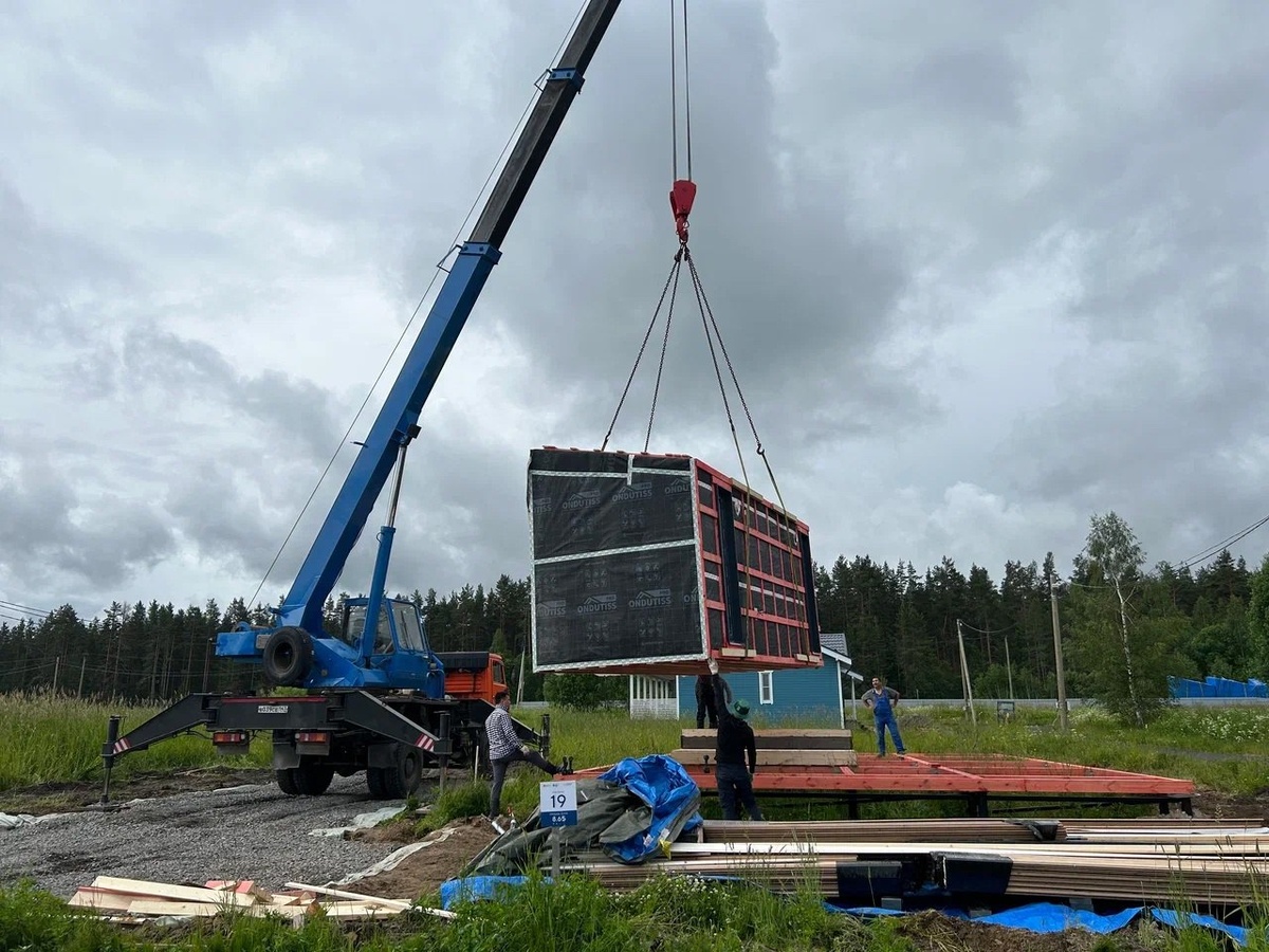 На участке идёт монтаж — ещё немного, и каркас будет полностью собран. Совсем скоро здесь появится уютный, тёплый и современный дом, в который можно будет заехать сразу после окончания работ.