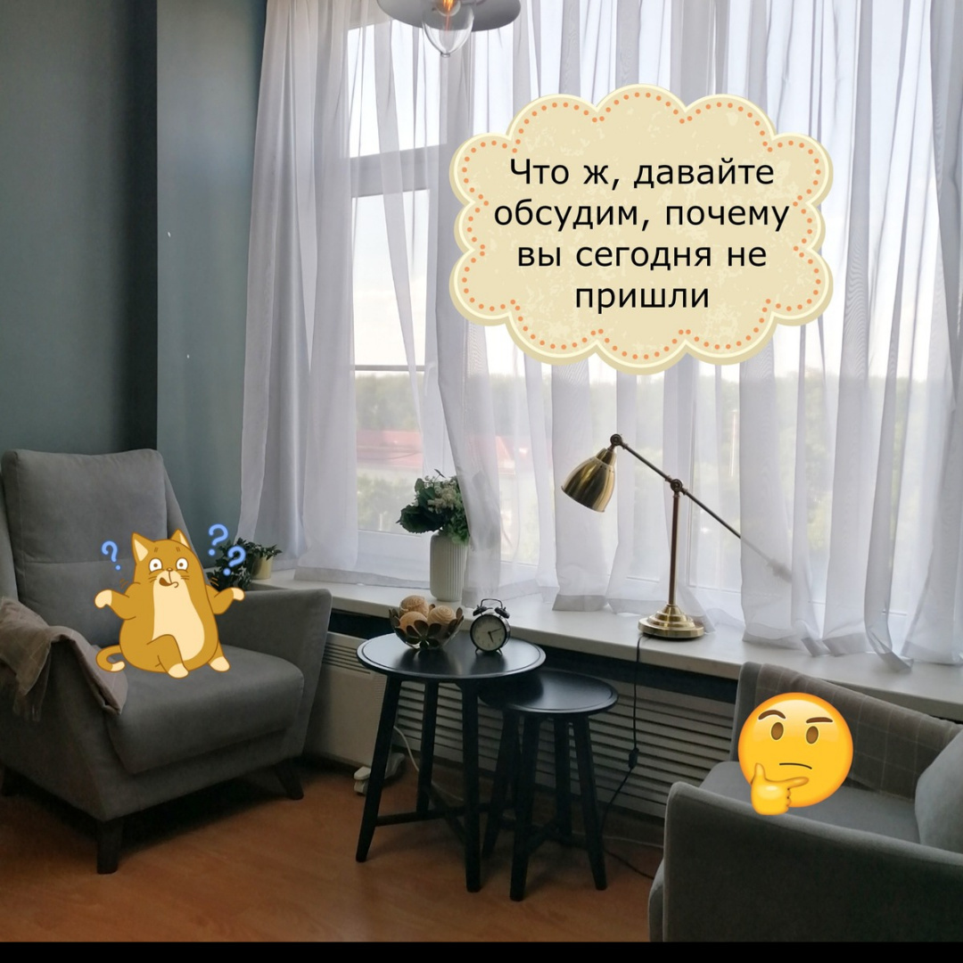 "Сессия, которую клиент пропускает, предупреждая об этом менее, чем за 24 часа, оплачивается" (также бывает регламент за 12 часов, диапазон предупреждения об отмене обговаривается на первой сессии в терапевтическом контракте). Такое правило является очень важным в психотерапии, а не просто "прихоть" психолога (🗯 "который хочет содрать побольше денег за работу, которая не состоялась из-за пропуска").