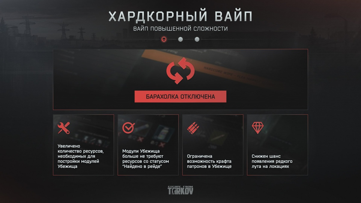 Hardcore Wipe в #EscapefromTarkov. Разработчик внимательно следит за обратной связью игроков и хотели бы внести чуть больше ясности. Все указанные на инфографиках ограничения будут носить волновой характер: по мере прогрессии игроков нами запланированы наборы изменений, которые будут влиять на геймплей, в том числе постепенное открытие локаций на экране выбора локаций. В преддверии (предположительного) релиза игры в этом году, разработчики Таркова решили собрать обратную связь комьюнити об изначально задуманном Таркове. Сложной и нишевой игрой далеко не для каждого... Уровень 1: Из первых подробностей мы узнали, что в грядущем сезоне: