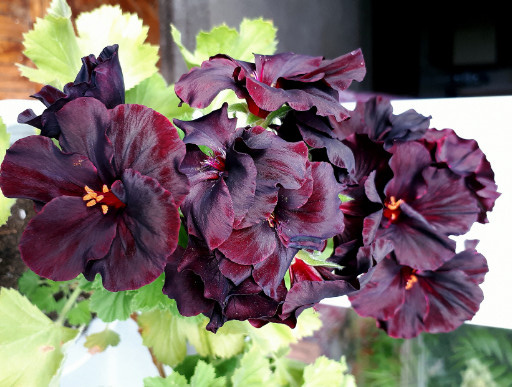 Есть ли у вас,, друзья, самые любимые цветы? А из десятка моих самых-самых этот тёмненький красавец (не подумайте, он не из Африки😉🌺) всегда был в фаворе. И не только потому, что он из серии королевских. Не потому, что у него очаровательные зелёные листочки, но если, не дай Бог, хоть один нечаянно заденешь, он отскочит, как тот лягушонок, когда чувствует опасность. Главное же у этого королевского отпрыска - его цветы, как вы уже, наверное, догадались. Они настолько тёмные, насколько может быть тёмной майская ночь. Они настолько бархатные, насколько может быть мягким бархат с его переливами и игрой светотени. А ещё они глазастые. Их оранжевые глазкИ смотрят на мир так же, как смотрят на мир удивлённые глаза детей. Надеюсь, портрет моей любимицы королевской пеларгонии «Aristo Black Velvet” описать удалось. Совсем недавно она расцвела и цветоносы на всех её четырёх прочных стеблях, свежие, чистые, полные энергии и сил, заявили о себе: вот она я, любуйтесь, восторгайтесь, пойте обо м