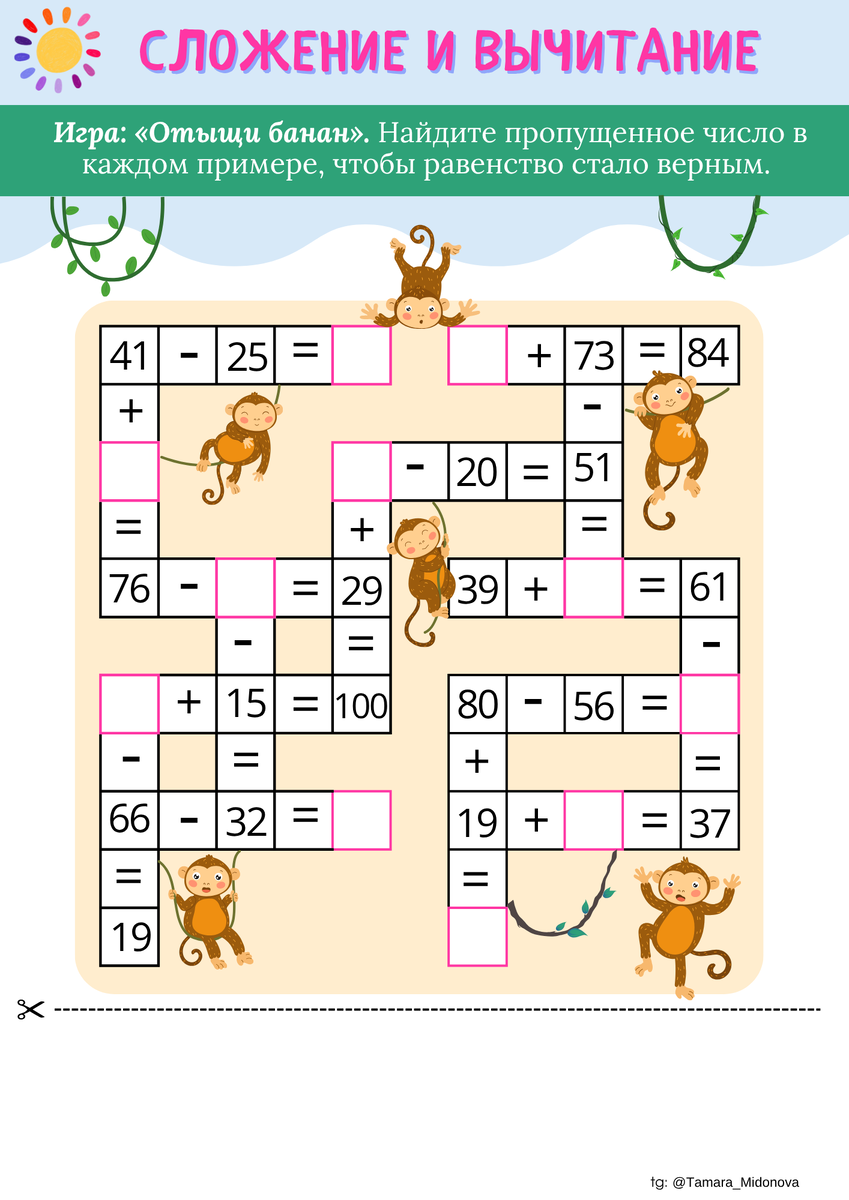 🐵🍌Бесплатная игра «Отыщи банан» ✏️ Находим пропущенное число в каждом примере, чтобы равенство стало верным! Игра подойдёт для 3 класса (математика). 📎 Материалы — в комментариях: 🖼 PNG-версия для печати или интерактивной доски 🧩 Готовая доска в Chattern 💗 Нравится? Нажмите ♥️ — это лучшая благодарность! 👩🏫 Поделитесь с коллегами — вместе сделаем уроки интереснее! ––– 📚 Все материалы |✏️ Telegram |📘 ВКонтакте #методичка_математика_на_5 #3класс #математика #сложение #вычитание #chattern