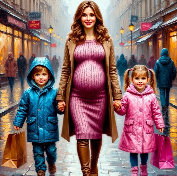 Вдруг взгляд Лизы зацепился за яркое пятно – маленькую группу людей, идущих навстречу. Не заметить их было невозможно. Мать с детьми. Женщина была беременна, округлые очертания живота подчёркивало трикотажное платье брусничного цвета. Вся она – фигура, лицо, лёгкая улыбка, тёплый спокойный взгляд, мягкие локоны волос – была окутана тихой радостью и умиротворением. Дети лет пяти-шести – девочка в розовом пальто и мальчик в голубой куртке – держались за руки матери и очень походили на неё, те же глаза, выражения лиц, волосы цвета гречишного мёда.