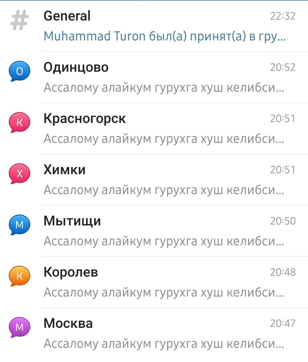 Moskvadagi musofirlar uchun katta guruh ishga tushdi, bitta guruhni ichida hamma shaharlar shu guruh ichida