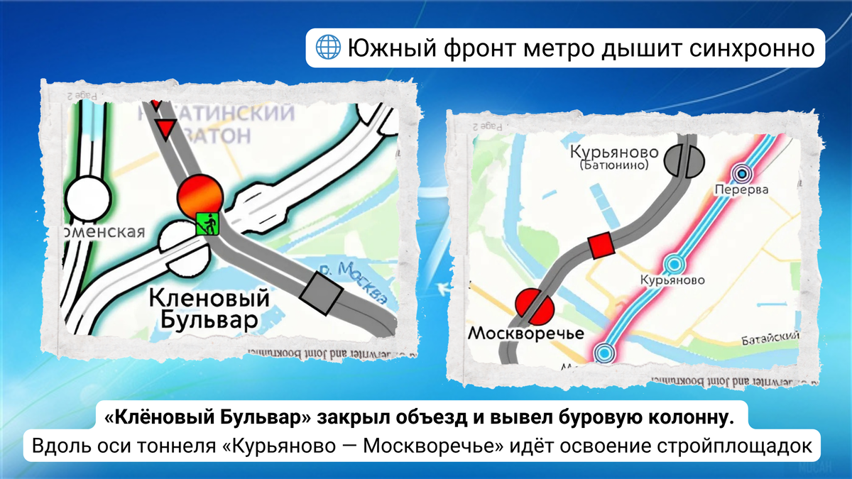 официальные отчеты. Давайте вместе разберемся, что же на самом деле происходит с нашей Москвой. Поехали? Во-первых, покажем строительство 🚇 станции «Кленовый Бульвар» 🏭 Бирюлëвской линии. Завезены армкаркасы для стены в грунте и продолжается её устройство. Также возводятся конструкции временного строения, в котором разместится сепараторная установка для обслуживания гидропригрузного щита при проходке тоннелей в сторону «Курьяново». Ведётся строительство объездной дороги для последующего расширения стройплощадки. Во-вторых, хотим сообщи