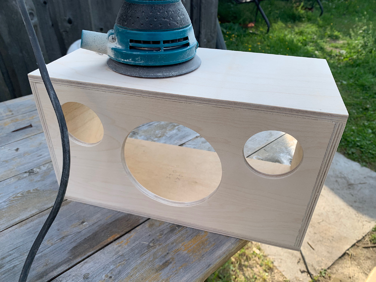 Приветствую всех подписчиков и читателей моего небольшого блога! В прошлой статье обещал рассказать как выпилить ровное отверстие в корпусе акустики без коронки и фрезера. В общем выпиливаем отверстие электролобзиком максимально аккуратно и не выкидываем этот выпил (круглый кусок фанеры), просверливаем в центре сверлом отверстие в моем случае 6 мм. Нам понадобится болт 6 мм, 2 шайбы и 2 гайки, мебельный степлер и наждачная бумага зернистостью p40 или p60 покрупнее. На болт одеваем шайбу, затем наш круглый выпил, далее шайбу и зажимаем гайкой, первую гайку прижимаем второй чтобы не раскручивалось в процессе. Вставляем наше приспособление в патрон шуруповерта или дрели, затягиваем и начинаем шлифовать наше приспособление (торец фанеры) об наждачную бумагу, максимально пытаемся выровнить нушу круглую заготовку. После этой процедуры, с помощью степлера и нарезанной на кусочки наждачной бумаги, крепим на торец нашей круглой фанеры кусочки: Просовываем наше приспособление в отверстие нашег
