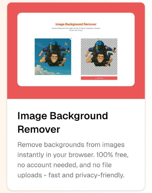 🎨 УДОБНЫЙ ИНСТРУМЕНТ ДЛЯ УДАЛЕНИЯ ФОНА Знаешь, как часто нам нужно быстро убрать фон с изображения? CreatorKit — это решение, которое работает мгновенно и бесплатно. Никакой регистрации, только загружай фото и получай результат за пару секунд. Почему это важно? Сколько времени ты тратишь на редактирование? Этот сервис упрощает процесс до одного клика. Идеально для тех, кто ценит время. Как использовать? 1. Загрузи изображение. 2. Нажми "Запуск". 3. Получи фото без фона. Смотри скрин – там всё наглядно. Жми 🔥, если инфа полезная! #Бесплатно | #ОбработкаФото | ВСЁ ПРО AI | AI NEWS | Дзен | ОК
