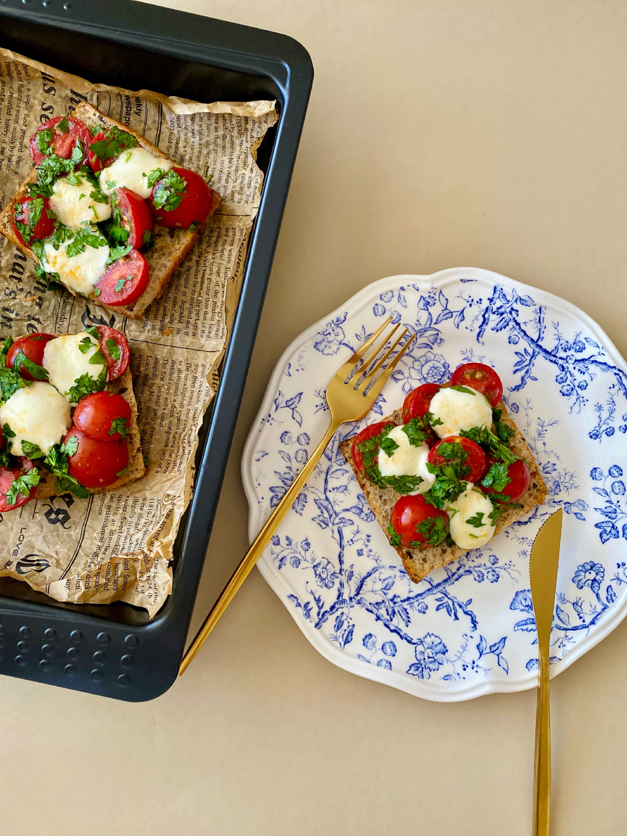 Сегодня будет рубрика #недесерт и вкусный рецепт завтрака. Самый любимый завтрак после сырников, это тосты с помидорками черри и моцареллой. Очень простой, но такой вкусный завтрак не оставит равнодушным никого! В этом рецепте нет определенного вида хлеба, я рекомендую использовать тот хлеб, который вам больше всего нравится. Но даже с обычным нарезным батоном будет тоже очень вкусно. Проверено на разных видах хлеба и не раз 😉 Ингредиенты на 3 тоста: Ингредиенты на 2 тоста будут все те же самые, только изменится количество черри 6 шт и 6 шариков моцареллы. Приготовление: Духовку разогреть до 180°С. Форму для запекания выстелить бумагой для выпечки. Выложить в форму хлеб. Помидорки и зелень помыть, промокнуть бумажным полотенцем. Черри разрезать пополам и переложить в тарелочку. Измельчить зелень. Зелень отправить к помидорам. Посолить, посыпать сухим чесноком, полить маслом и все хорошо перемешать. Добавить шарики моцареллы и снова перемешать. На каждый кусочек хлеба выложит