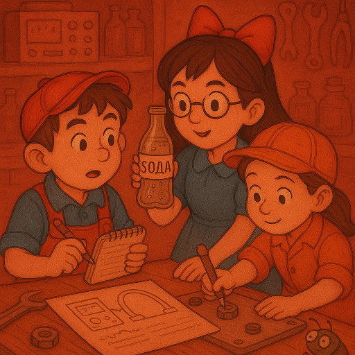 На следующее утро в Бункере П царила напряжённая тишина. Не оттого, что никто не говорил — наоборот, все трое шептались, бегали, крутили ручки и что-то чертили. Но в воздухе чувствовалось: сегодня будет настоящее испытание. — Значит так, — начал Болтик, хлопнув по пыльной доске. — Топливо у нас есть. Панель работает. Осталось собрать саму рамку телепорта. Шайбочка кивнула, сверяясь с блокнотом. — Напряжение стабилизировано. Контакты изолированы. Жук-электрик сидит спокойно — значит, утечек нет. Клёпочка сняла с полки блестящую металлическую дугу — она была изогнута в полукруг, а на концах мерцали крошечные лампочки. — Это и будет телепортационный контур, — сказала она торжественно. — Я придумала, как закрепить его на подставке от старой сушилки. — Ура! — тихо сказал Болтик, но как-то слишком тихо. — Ты чего такой задумчивый? — спросила Шайбочка. Он почесал затылок: — А что, если мы включим, и вся мастерская исчезнет? Или… потолок рухнет? Или мы случайно отправим жука в другую вселенн