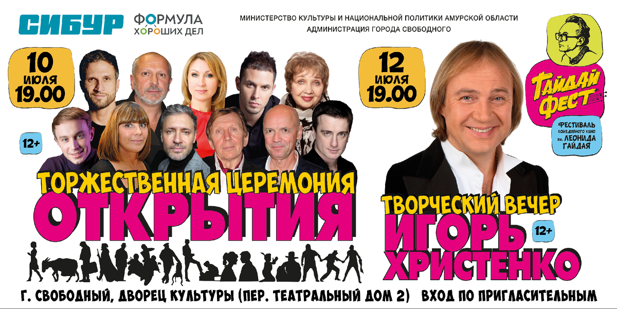 Этим летом вас ждет настоящий праздник для всех киноманов — с 10 по 13 июля впервые состоится фестиваль комедийного кино имени Леонида Гайдая. И пройдет он на родине легендарного режиссера — в Свободном! Фестиваль организуют при поддержке программы социальных инвестиций «Формула хороших дел» СИБУРа, Министерства культуры и национальной политики Амурской области и администрации города Свободный.