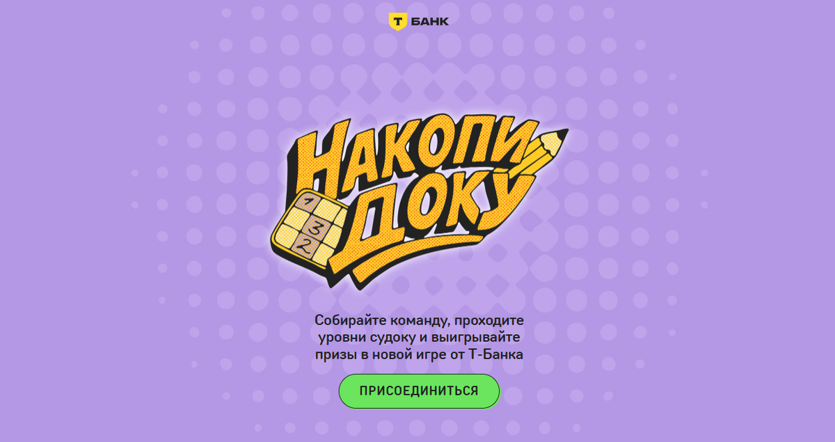 В приложении банка появилась новая игра - Накопидоку, по факту - Судоку. Найти можно, вбив в поиске "накопидоку" или можно перейти с сайта игры. Длительность - с 1 по 31 июля 2025 Как играть: Для чего механика команды - дарить друг другу жизни. Можно заходить каждый день и отправлять друг другу доп.жизни, то есть возможность пройти уровни. Всего обещают 160 уровней. Что обещают в качестве призов: Общий призовой фонд - 2,5 млн рублей В игре нужно выполнять задания, собирать коллекции. Все 12 коллекций предметов можно собрать за 160 уровней. Каждая собранная коллекция - это один билет. Розыгрыш призов состоится 21 августа. Если вы еще не заходили в игру, заходите https://b.tbao.su/sudoku и вводите мой промокод EWDA-TK4F В судоку я лично играю плохо, но вдруг вам повезет, и вы соберете быстро все-все призы) Всем денежков.