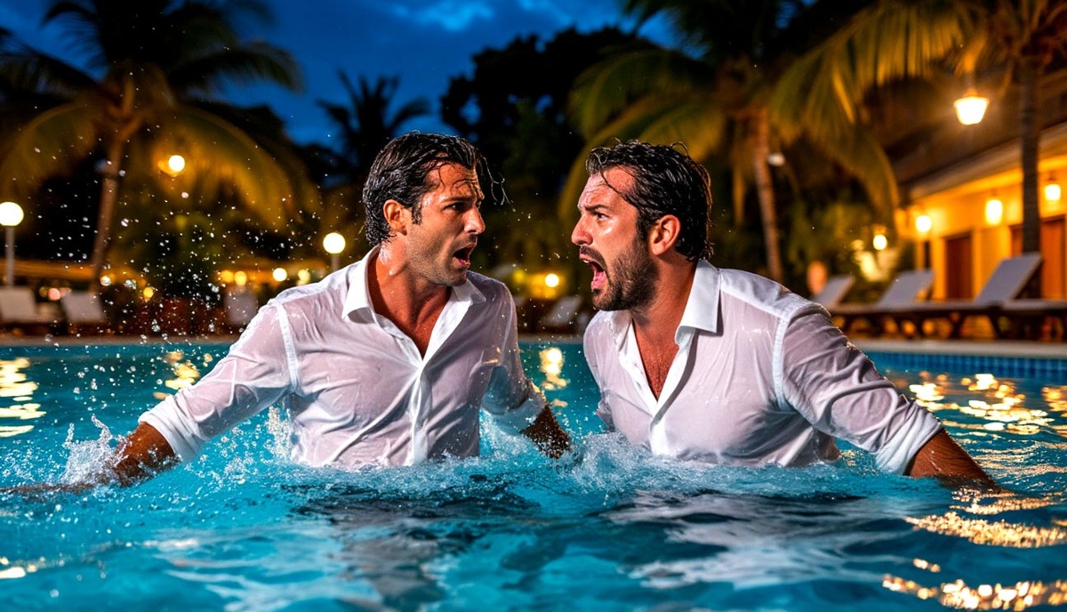 Денис взревел, как раненый зверь, и бросился на Антона. Тот ловко увернулся, и Денис, потеряв равновесие, с громким всплеском шлепнулся в бассейн. Вода фонтаном брызнула во все стороны, а вокруг раздался взрыв смеха. Даже бармены перестали смешивать коктейли, чтобы посмотреть на это зрелище.