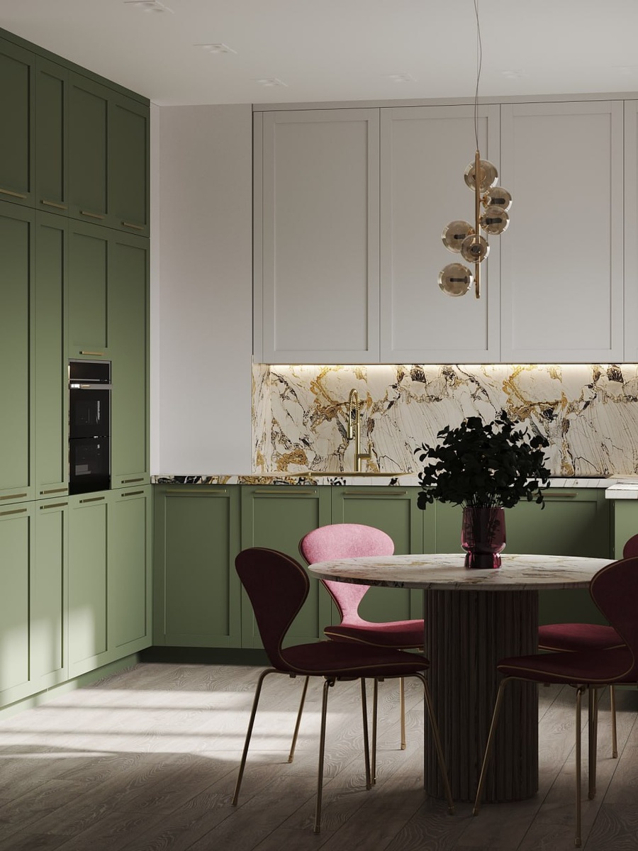 Для вашего вдохновения кухня 18м2 + гостиная 15м2 в современном стиле💫