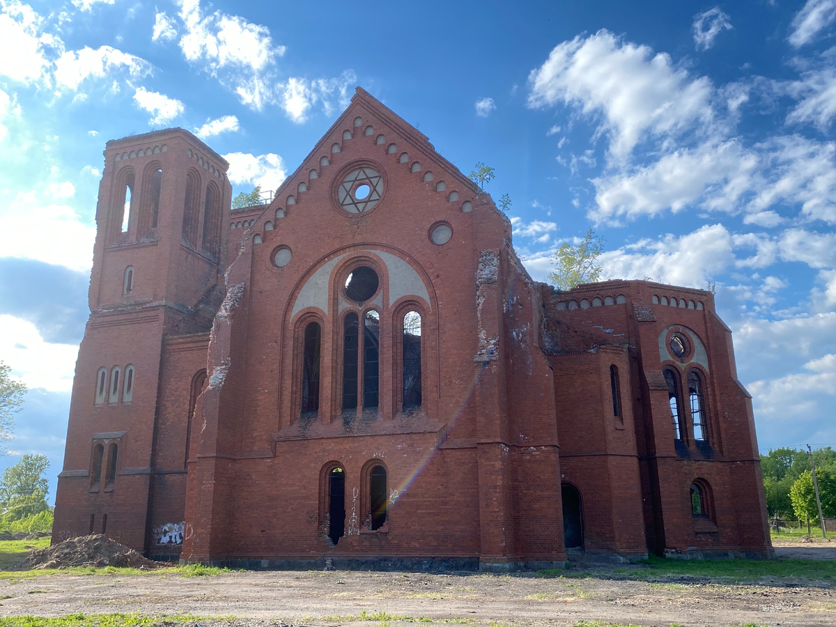 В этом велопутешествии по Калининградской области меня больше всего интересовали кирхи, и наш маршрут я, буквально, строила по ним. Поэтому начальной точкой нашего пути стал пос. Чернышевское и заброшенная кирха Эйдткунена. Кирха сохранила свое историческое название, в отличие от поселка Чернышевское, бывшего Эйдткунена. После ВОВ город был передан СССР и в 1946 году переименован в Чернышевское. Кирха была заложена по проекту известного немецкого архитектора Фридриха Адлера в 1883 году, освящена в 1889 году. Во время Второй мировой войны кирха пострадала от пожара, в послевоенные годы использовалась в качестве складского помещения. С 1996 года кирха пустует и разрушается. В марте 2007 года кирха получила статус объекта культурного наследия местного (муниципального) значения. А с 2010 года - находится в собственности Русской православной церкви. Казалось бы, хорошее дело, но кирха по-прежнему заброшена и продолжает разрушаться. Кирха была построена на пересечении дорог, которые обр
