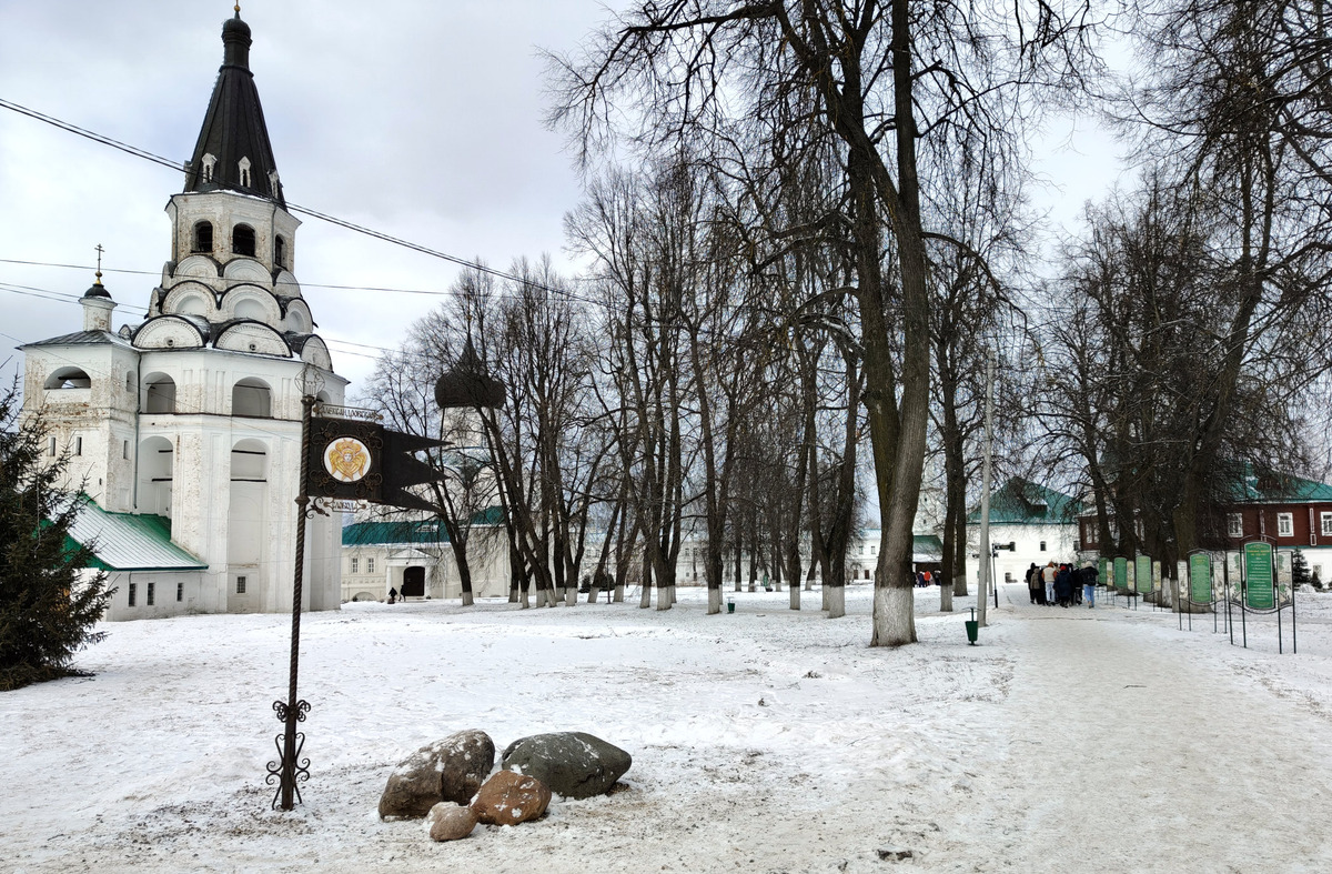Келейный корпус XVII–XIX веков, как я понял, частично занимают администрация музея-заповедника и помещения для детских мастер-классов, а частично он отдан монастырю. Так или иначе, нам там смотреть нечего.