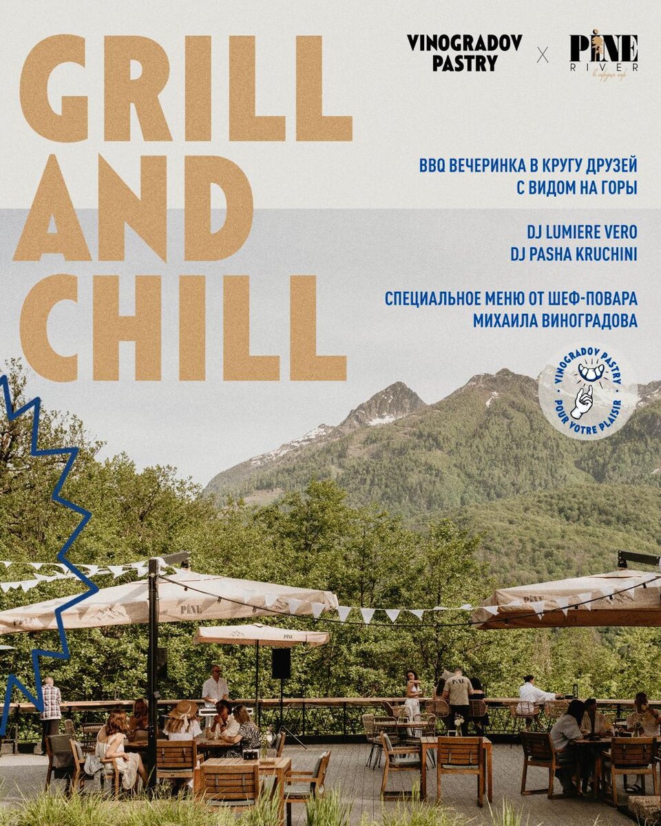 GRILL & CHILL на террасе Pine River 📎 4 июля с 15:00 до 20:00 приглашаем на BBQ-вечеринку от Vinogradov pastry и Pine River. В планах: готовить на гриле особое меню Михаила Виноградова под атмосферные сеты DJ Lumière Vero и DJ Pasha Kruchini, наслаждаться панорамой гор и летом, которое наконец пришло. 📎 Уникальная гастро-коллаборация с Vinogradov pastry — бистро с французской выпечкой и десертами, которое по праву стало гастрономической легендой Красной Поляны. 📍 Терраса Pine River, Пчеловодов, 59 Необходимо заранее забронировать место по телефону: +7(918)900-66-93 Вход свободный ❤️🔥