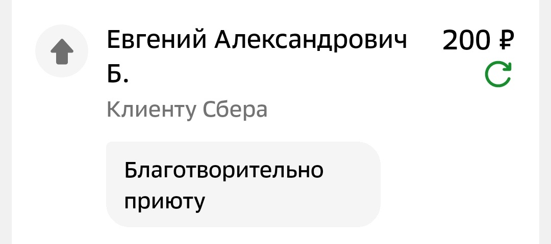 Сделала перевод на благотворительность , как попросила женщина выигравшая 300 руб, при этом 100 руб вернулись в конвертик из которого были благополучно взяты. Ещё раз примите мои искренние поздравления !!! И давайте вместе со мной, после распределение денег по конвертам уже в этом месяца проведём ещё одну игру.