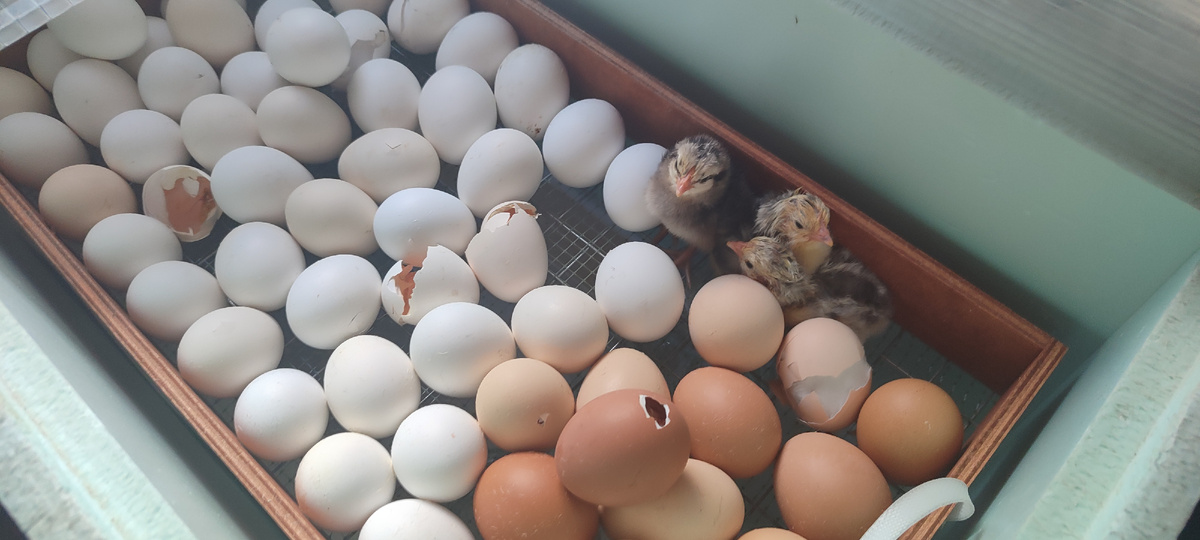Всегда хотел попробовать заложить яйца в инкубатор, не владел ни опытом, ни знаниями, ни оборудование. У знакомого стоял пылился инкубатор несколько лет. Перед тем как выбирать и покупать себе инкубатор, нужно было попробовать на собственной шкуре какого это. Начал просто набор знаний, как отбирают яйца, как хранят, как подготавливают, и как инкубируют. Но скажем домашний метод от производственного всё же различаются. Я решил сильно прям заморачиваются и попробовать при самой минимальной и простой подготовки узнать процентовку вылупления. Раздобыл соседский инкубатор, яйца были найдены простые домашние как со слов было на 5 куриц - 1 петух. Мы попросили подсобрать более менее ровные без дефектов и трещин яйца и хранить в тёмном и прохладном месте при температуре от 15 до 20 градусов. За 3 дня нам собрали 80 яиц мы их выкупили. Для закладки полного инкубатора нам потребовалось 72 яйца. По итогу, выводок получился очень даже хороший, больше 80% вылупления. После успешного опыта я пр