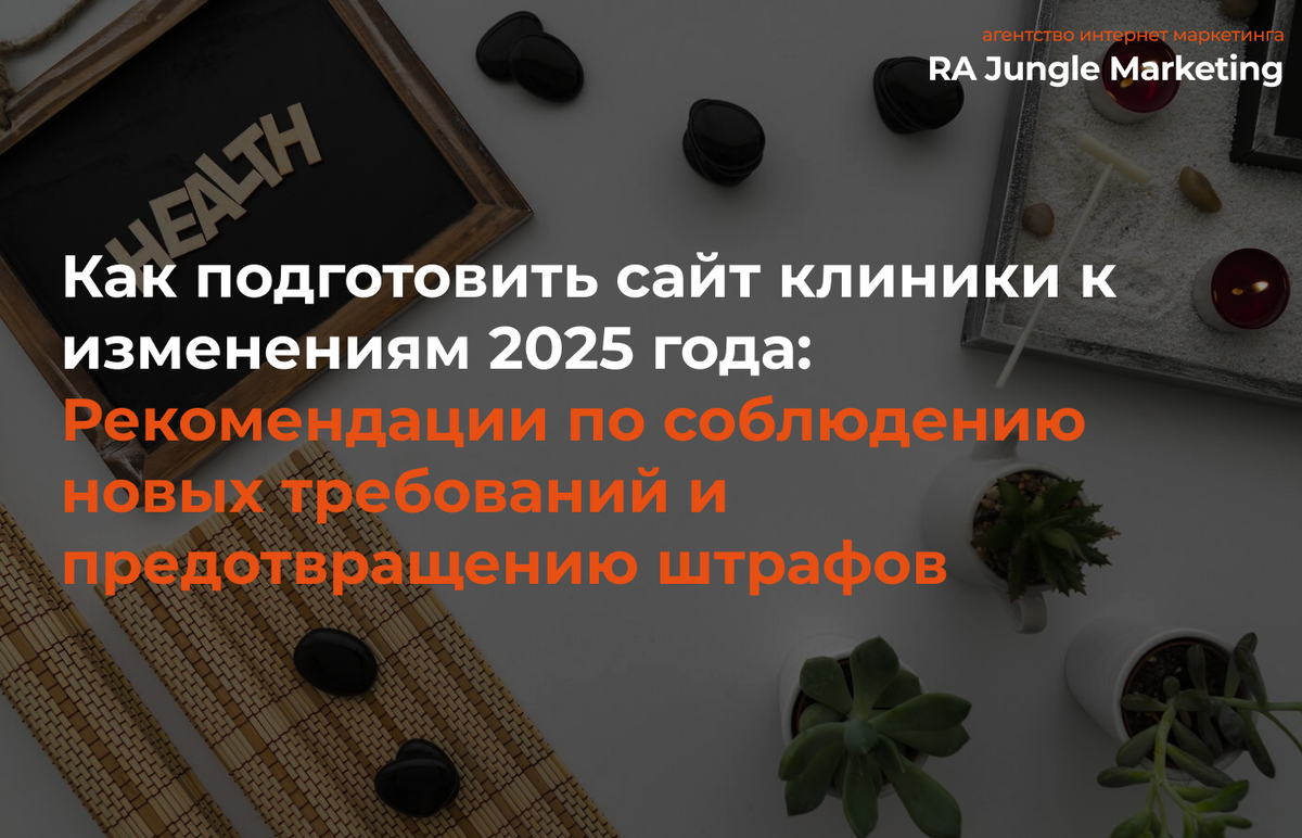 Не рискуйте репутацией и финансами вашей клиники! Проведите аудит вашего сайта на предмет выявления потенциальных несоответствий новым законодательным требованиям с Jungle Marketing. Свяжитесь с нами, чтобы узнать, на что стоит обратить внимание для обеспечения полного соответствия вашего сайта всем актуальным законам.