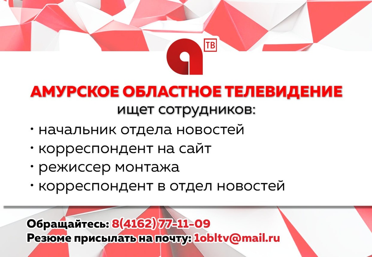Хочешь работать корреспондентом на ТВ и быть в гуще событий? 🎥🎤🤩 Если ты энергичный, целеустремленный, ищущий интересную работу с достойной зарплатой в дружном коллективе, тогда тебе – на АОТВ 📺 Профильный опыт работы желателен, стремление развиваться – обязательно. 📲 Резюме принимаем по адресу: 1obltv@mail.ru 🤝 Официальное трудоустройство, полный соцпакет, достойные условия для работы!
