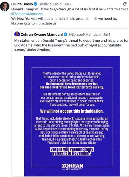 De Blasio preps 'HUMAN SHIELD' to stop Trump arresting Mamdani